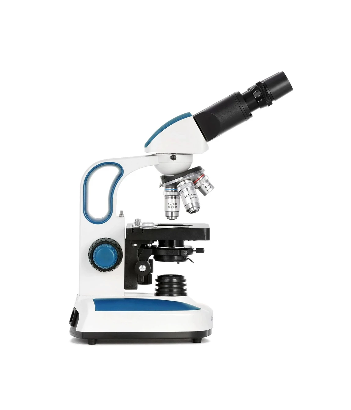 With a wide magnification range from 40X to 1000X, this microscope allows you to examine everything from large specimen structures to fine cellular details. Precision-ground achromatic objectives deliver clear, high-contrast images, while the smooth coarse and fine focusing controls ensure accurate and effortless adjustments at any magnification level.
